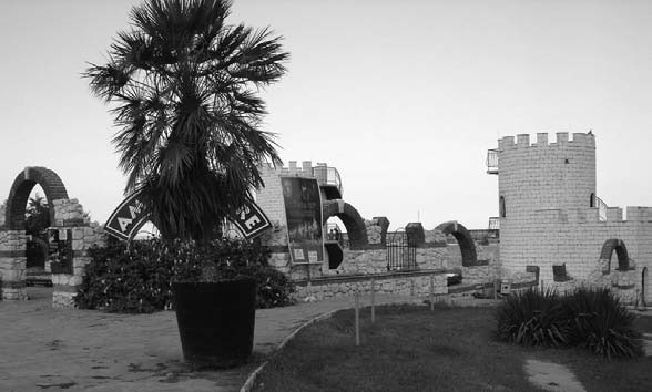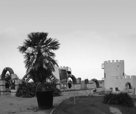 В данном случае шершавость цемента достигается точно таким же способом, каким мы сделали фактуру для кирпичей. Только тогда создавался новый слой выше фонового, залитого красной краской, а теперь необходимо создать новый слой выше слоя с цементом. Все остальное делайте строго аналогично. Итоговый результат представлен на рис. 10.35.