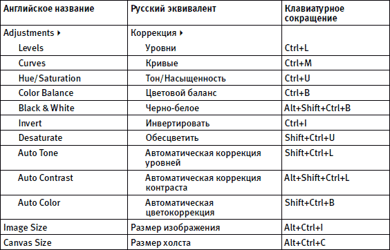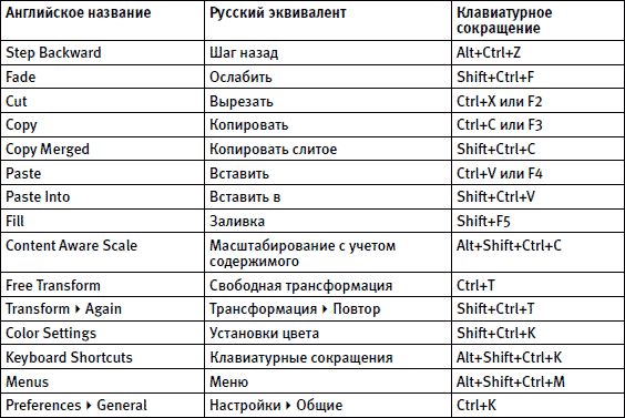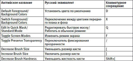 Еще раз напоминаем, что Bridge не является неотъемлемой частью Photoshop и может быть использован для управления любыми графическими файлами.Приложение 2 Клавиатурные сокращения команд и инструментов