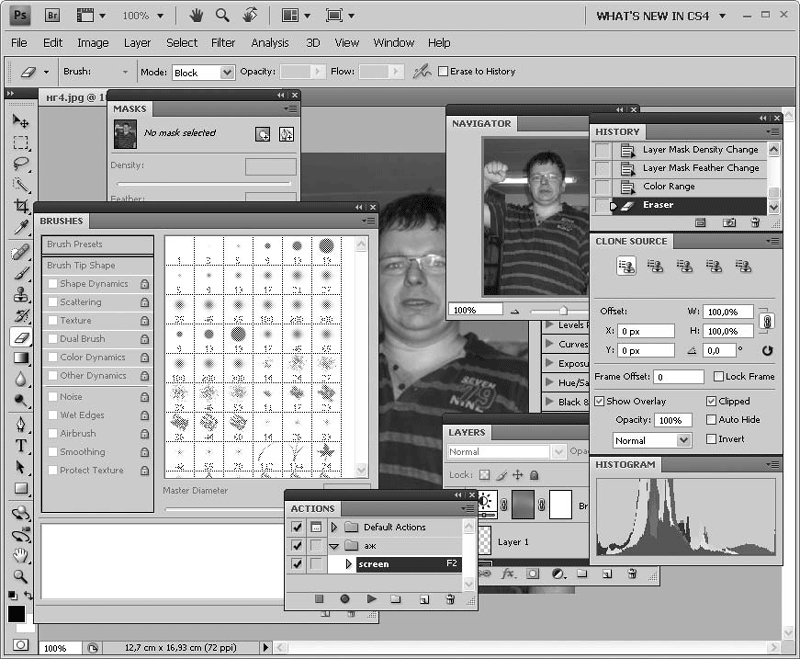 В Photoshop CS4 эта проблема решена за счет того, что палитры собраны в наборы. Наборы можно быстро сворачивать и разворачивать. Для этого достаточно щелкнуть на заголовке набора. Однако любую палитру можно вытащить из набора и расположить где-нибудь в окне. Это удобно, если вы используете данную палитру постоянно. А если таких палитр несколько, хуже того – много, то очень скоро на экране будет трудно что-либо рассмотреть (рис. 2.14).