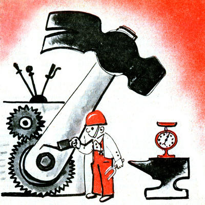 — Понимаешь, Тима, любая машина со временем изнашивается. Вечного двигателя пока никто не изобрел. Хуже того, задолго до того, как она износится, машина, будь то станок или молот, даже телевизор, разрегулируется. Телевизор мы можем легко настроить, у него есть для этого специальные ручки. Иное дело — станок или молот. Настроить его может только специалист очень высокой квалификации, который так и называется — настройщик. Никто лучше его не разбирается в премудростях всевозможных механизмов…