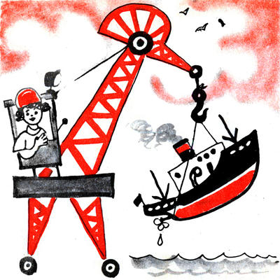 Что же это за профессия? Крановщик. Вернее — крановщица, потому что на большинстве кранов судостроительного завода — самых мощных механизмах, способных поднять локомотив, весящий многие десятки тонн, — работают, как правило, хрупкие девушки.