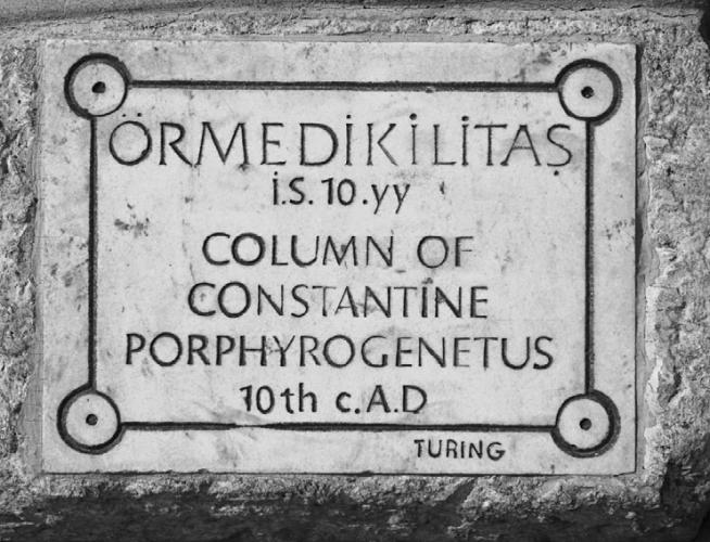 Рис. 24. Табличка, установленная историками возле обелиска Константина, утверждает, что он относится якобы к X веку н. э. Фотография 2008 года