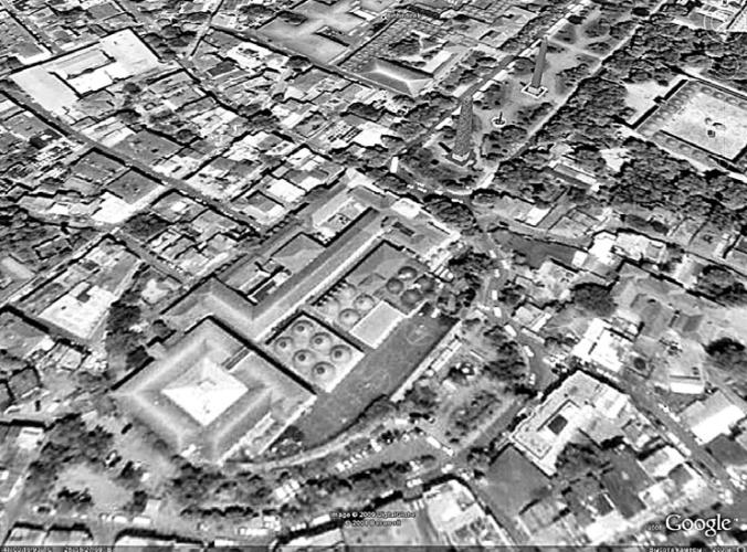 Рис. 34. Колизей в Стамбуле и примыкающая к нему часть ипподрома. Съемка из космоса. Масштаб фотографии приведен к высоте съемки 200 метров. Google Earth