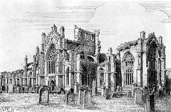 Мелрозское аббатство. С рисунка Дженни Уайли.