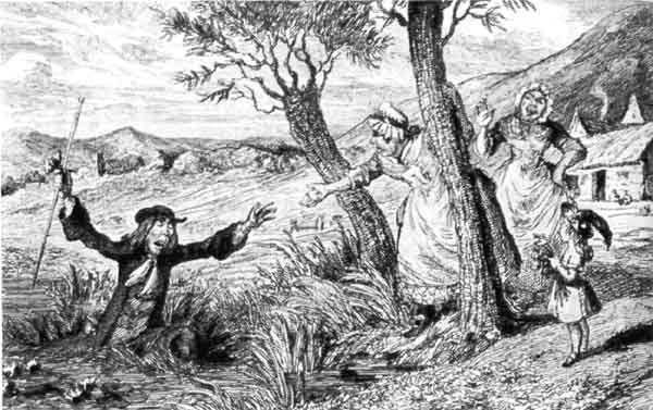 Домини Сэмсон в беде. Иллюстрация Джорджа Крукшенка к «Гаю Мэннерингу».