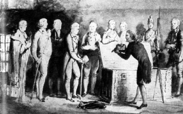 Извлечение регалий шотландской короны. Четвертый слева — В. Скотт.