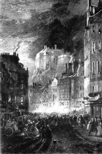 Расправа над Портеусом. Иллюстрация к роману «Эдинбургская темница». С гравюры по рисунку Т. М. Ричардсона.