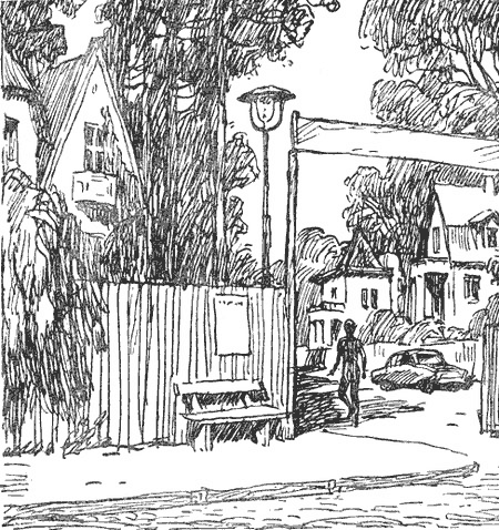 Вот показались свежевыкрашенные зеленые ворота и знакомая скамейка возле доски объявлений. Андре замедлил шаги. Хорошо было усесться здесь и глядеть на улицу, на проезжающие мимо машины и трамваи… В прошлом году они с Мариной не раз сидели вдвоем на этой скамейке.