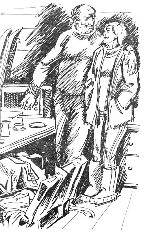Катрин смущенно смотрит на родителей. Ею овладевают какие-то странные чувства. Она и хочет отвести глаза, и не может. Родители, взявшись под руки, идут к домику. Рядом с плотным, коренастым отцом мать выглядит особенно тоненькой и нежной.