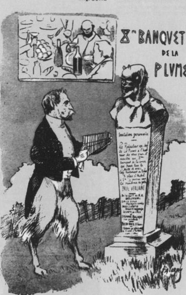 Стефан Малларме (слева)и Верлен: приглашение на восьмой банкет журнала «Перо». Рис. Ф.-О. Казальса.