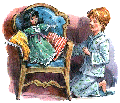 Ему хотелось обнять её, но кукла была уж слишком мала для такого проявления чувств, и к тому же, подумал он, это было бы чересчур сентиментальным, так что он только взял её ручку в перчатке и сказал:
