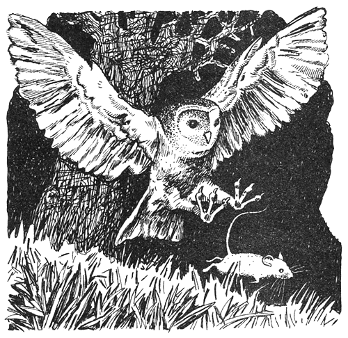 Семья бросилась следом. И в этот момент сова беззвучно нырнула вниз. Её огромные, горящие жёлтым светом глаза не отрываясь следили за Робином, который замыкал вереницу мышей.