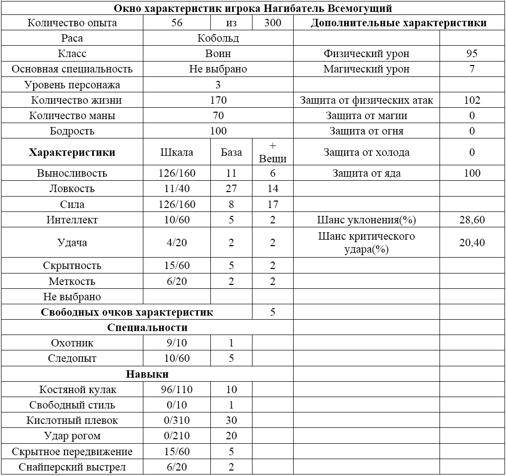 За шесть часов хода (все-таки кач немного нас задерживал) я, помимо того, что ювелирно отработал физику «удара рогом» и «плевка кислотой», поднял их, соответственно, до 20 и 30 уровней. Сообщения пообещали, что у плевков теперь будет сопутствующий дебаф «кровотечение», а у удара – «оглушение», и я не мог не полюбоваться таблицей характеристик.