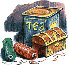 В доме было несколько коробок с чаем. Две жестянки в кухне — одна с индийским, другая с китайским («хотя было бы нечестно, если бы он положил подсказку в неё»). Имелась ещё красивая рифлёная чайница в серебряном чайном сервизе, которым мама пользовалась в особенных случаях, а также оцинкованная внутри коробка, в виде миниатюрного матросского сундучка, сделанная из светлого полированного дерева и окантованная медью. Везде было полно чая, но никакой информации.
