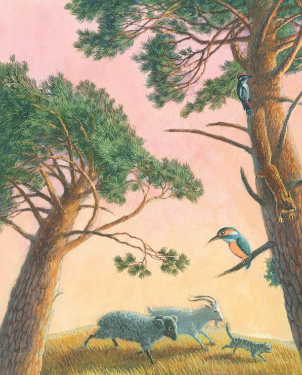 Вот стали они все вместе ночку коротать: козел да баран у огня, мурлышка на стог влез, а медведь под стог забился.