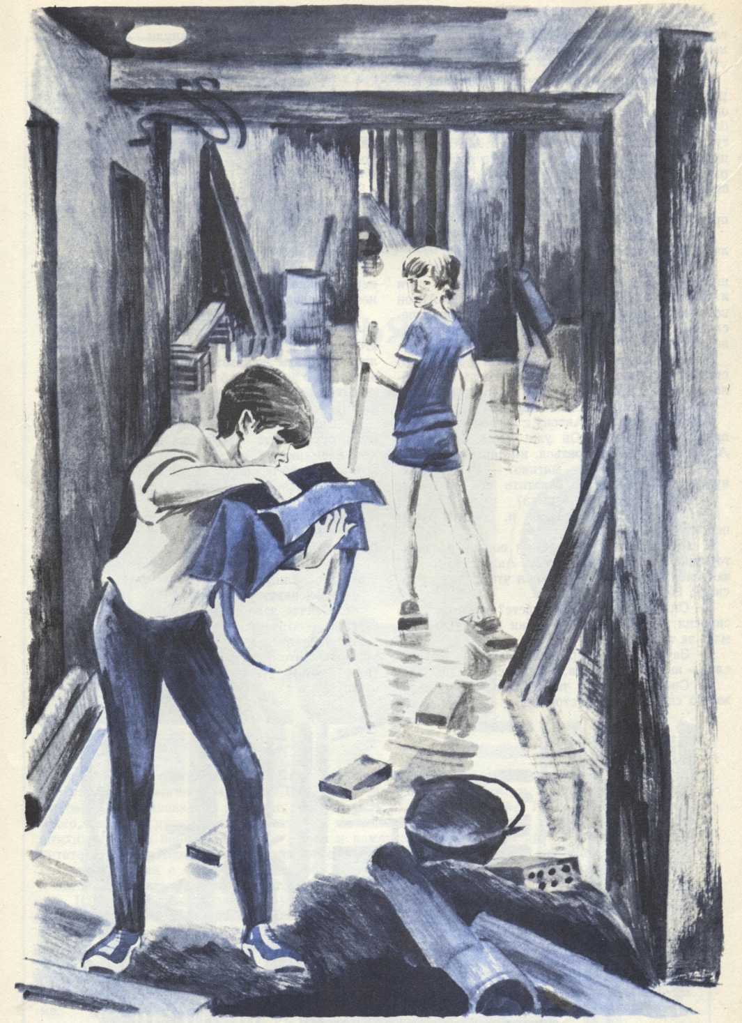 — Бросай мне сумку, бросай… — срывающимся от волнения голосом крикнул Акила. Он прошел по забору немного дальше и спрыгнул на кирпичи.