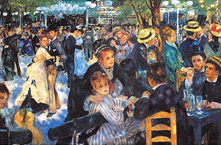Эти три картины — из собрания музея Орсэ: Опост Ренуар « Бал в Мулен де ла Галетт» (вверху); Клод Моне « Руанский собор» (в центре): Эдгар Дега « Оркестр в Опере» (внизу)