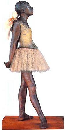 В Орсэ выставлена скульптура Эдгара Дега « Четырнадцатилетняя танцовщица» — на ней настоящие балетная пачка и бант.