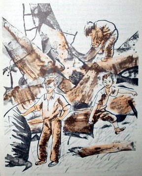 Нам нравилось стоять на носу нашего огромного корабля-острова. За нашей спиной садились и взлетали самолеты. Мы были впередсмотрящими. Мы вели наш корабль с домами и колодцами, с магазинами и детишками через опасный фарватер. И никто — ни летчики и ни их жены, ни жители Сопушков и ни кот Альфред — не знал, куда они плывут. Это знали только мы — я, Эдька и Кит.