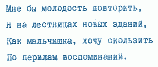 При встрече он извлекал из кармана бумажку и читал строфу, а иной раз строчку.