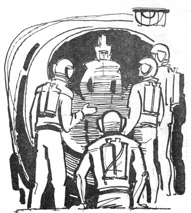 Следующими были помещения для экипажа. С подкупающей доверчивостью гость шел между двумя рядами улыбающихся человеческих существ, чуть было не уничтоживших его корабль. Бэрд включил свой коммуникатор и соединился со шкипером. — Этот плуми ведет себя, как солдаты в древности, когда носили латы. Они дерутся, как дьяволы, но во время перемирия дружелюбны и доверчивы. Я думаю, что это часть их цивилизации, а может быть, даже это необходимая часть любой цивилизации. И если я прав, то кто-нибудь с нашего корабля будет приглашен в гости к плуми...