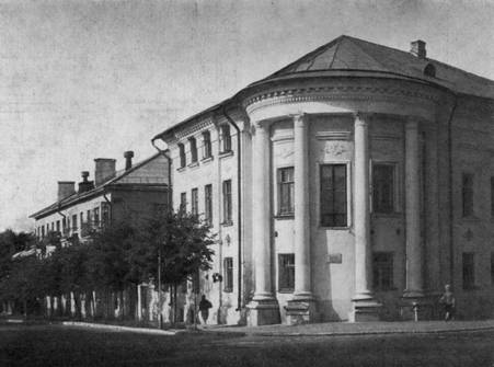 Бывший дом Сунгулова (Советская улица, № 33), построенный в начале XIX в., повторяет уже известную композицию двухэтажного дома с рустованным первым этажом и сдержанной декорацией второго (илл. 98). На его фасаде в замковых камнях окон помещены львиные маски — прием, обычный для архитектуры этого времени, но в Костроме встречающийся редко. Бывший дом Королева (Советская улица, № 39) представляет собой городскую усадьбу, состоящую из центрального большого дома и двух флигелей (илл. 87, 88). Главный дом имеет по фасаду 10 окон, что противоречит каноническому правилу классицизма, по которому на фасаде должно быть нечетное число окон. Дом, видимо, предназначался для заселения двумя семьями, и поэтому капитальная стена, делившая его, могла быть поставлена только в простенке. Парадные комнаты, расположенные по уличному фасаду, высокие, комнаты же, окнами выходящие во двор, низкие, так как имеют над собой антресольный этаж.