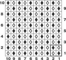 1-й, 3-й, 5-й, 7-й и 9-й ряды: * 1 лиц. скр. п., 3 изн. п., 1 лиц. скр. п., 1 изн. п., 1 лиц. п., 1 изн. п. *, повторять от * до *;