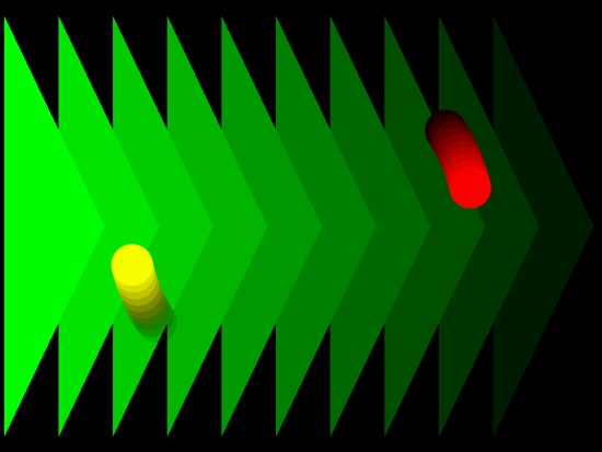 Манипулированием альфа-смешением можно легко получить эффект размытия при движении, когда быстро движущиеся объекты оставляют за собой след. Обычно такой эффект называется motion blur. Для получения эффекта в местах предыдущего положения объекта рисуют его полупрозрачную копию. Более простой способ создания эффекта - манипулирование цветовой интенсивностью.