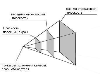 Объекты, или части объектов, располагающиеся за пределами области видимости, на экран проецироваться не будут, и мы их не увидим.