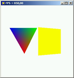 В списке подключаемых модулей первого примера этой главы, проекте каталога Ex01, как раз и добавлен указанный модуль. Пример очень простой, в пространстве вращаются два объекта: разноцветный треугольник и желтый квадрат (рис. 9.2).