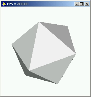 Этот многогранник описан двадцатью независимыми треугольниками. Координаты вершин и нормали я предварительно вычислил и использую в программе конкретные значения.