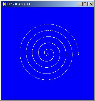 Количество точек я взял существенно больше по сравнению с предыдущими примерами. Координаты точек спирали вычисляются при каждой перерисовке экрана: