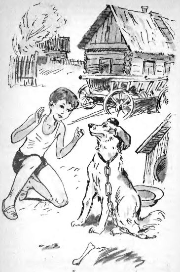 Вдруг где-то совсем рядом раздалось недовольное ворчание. Федос присмотрелся и увидел сперва конуру, а потом и вылезающую из круглого отверстия собаку.
