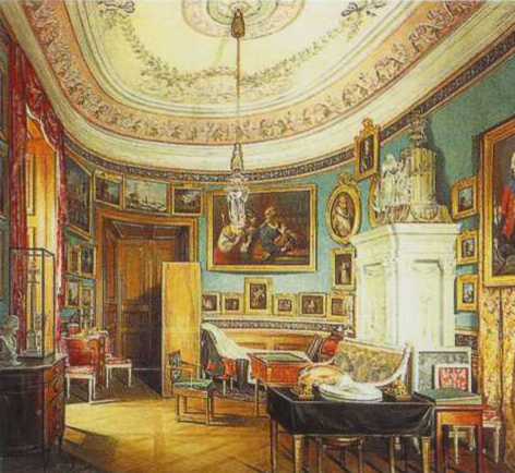 Овальный кабинет Павла I в Гатчине. Акварель Э. П. Гау. 1877 г.