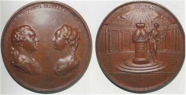 Настольная медаль Свадьба Великого князя Павла Петровича с принцессой Натальей Алексеевной. 29 сентября (10 октября) 1773 г.