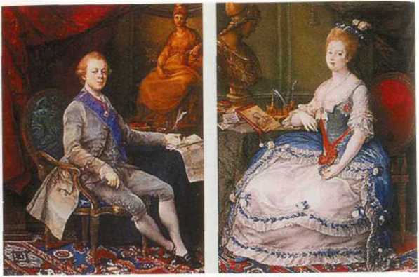 Граф и графиня Северные (великий князь Павел Петрович и великая княгиня Мария Федоровна). Художник Б. Патони. 1782 г.