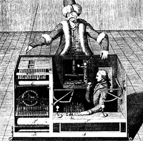 «Шахматист» фон Кемпелена принадлежал к той категории автоматических игрушек для взрослых, которые называли «искусственными людьми» [30] , и которые были известны уже древним. У греков и римлян механические куклы бегали вокруг стола, двигая головами и руками. Андроид Альберта Великого, открывавший двери входящим и приветствовавший их добрыми словами, был — как гласит легенда — уничтожен охваченным ужасом святым Фомой Аквинским, благодаря чему, из уст Альберта вырвалось знаменитое «Pertiit opus triginta annorum» («Пропали плоды тридцатилетнего труда»). Декарту приписывали создание автоматической «filie Francine» (дочурки Франсины).