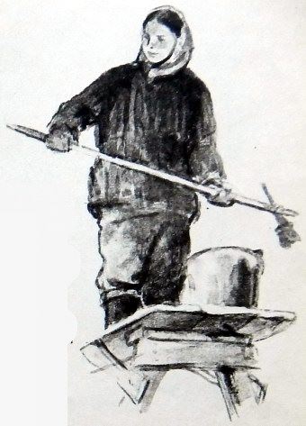 И проклятая бадья, которая раньше не хотела спускаться, теперь, покорно повизгивая, поползла книзу. Всё ближе снежная земля, всё ближе лысая голова Николая Ивановича…