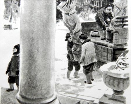С этого дня папин грузовик не стал больше возить мел и краски. Теперь из машины каждый день выгружали очень интересные вещи. Приехала гора пружинных сеток, а кроватные железные ноги и толстые тюфяки Олешек с папой привезли совсем отдельно. Потом в машине приехало зеркало. В его глубине поворачивались сугробы, двигались заснеженные ёлки и даже — Олешек сам видел — пролетела ворона.