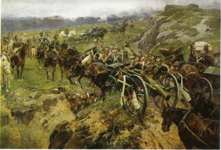 «Живой мост». Подвиг рядового Гаврилы Сидорова. Ф.А. Руба. 1897 г.