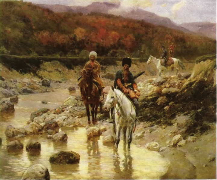 Казаки у горной речки. Ф.А. Рубо, 1898 г.