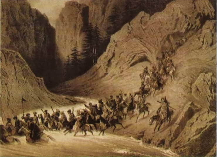 Горцы в походе. Литография с оригинала Г.Г. Гагарина
