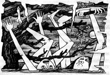 Малышня с радостным визгом — словно не спасалась от опасности, а услышала о новой игре, — посыпалась в воду, поплыла к пляжу. Липа качнулась, чуть подвсплыла, провернулась вокруг ствола, откатываясь к стремнине, и поползла вниз по течению. Хромой Зубр облегчённо перевёл дыхание… и вдруг увидел, как среди чёрных мокрых ветвей мелькнула детская рука. Дерево повернулось ещё чуть-чуть, и вслед за рукой стало видно лицо ребёнка.