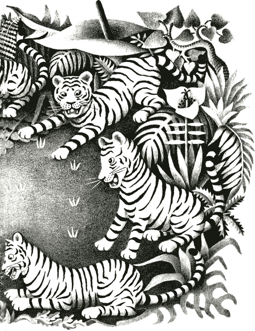 — Никогда ещё не пробовал маленьких детей, — произнёс третий тигр. — Они, должно быть, очень нежные.