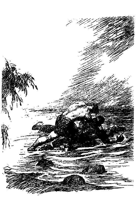 На берегу он попробовал взвалить разведчика на плечи, чтобы подальше отнести его от границы, но убедился, что сейчас, после, борьбы, ему не справиться с этой живой ношей.