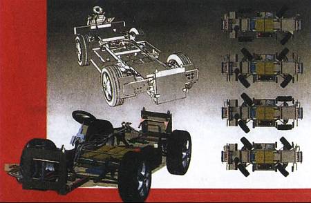 Шасси будущей коммунальной машины. На схеме видно, что все 4 колеса такой машины могут поворачиваться в разные стороны.