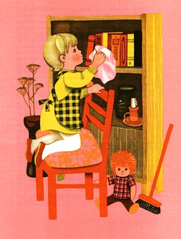 После завтрака мама принялась за уборку. Она подмела пол, а потом попросила Каари помочь ей вытереть пыль. А Каари сказала: