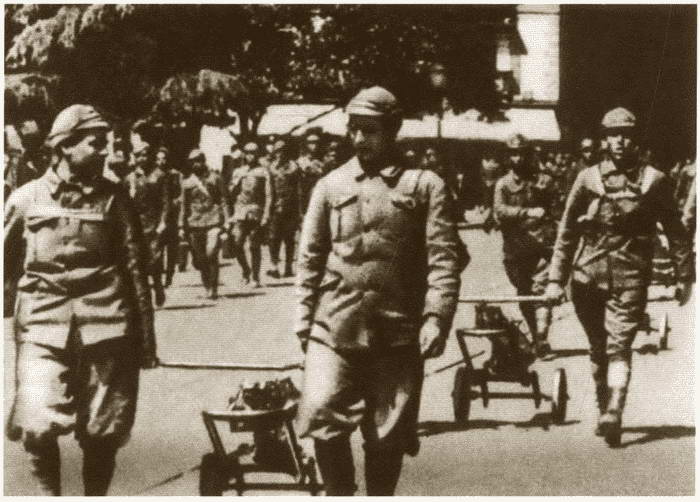 К. А. Мерецков (Петрович) среди командиров республиканской Народной армии (третий справа). 1936 г.