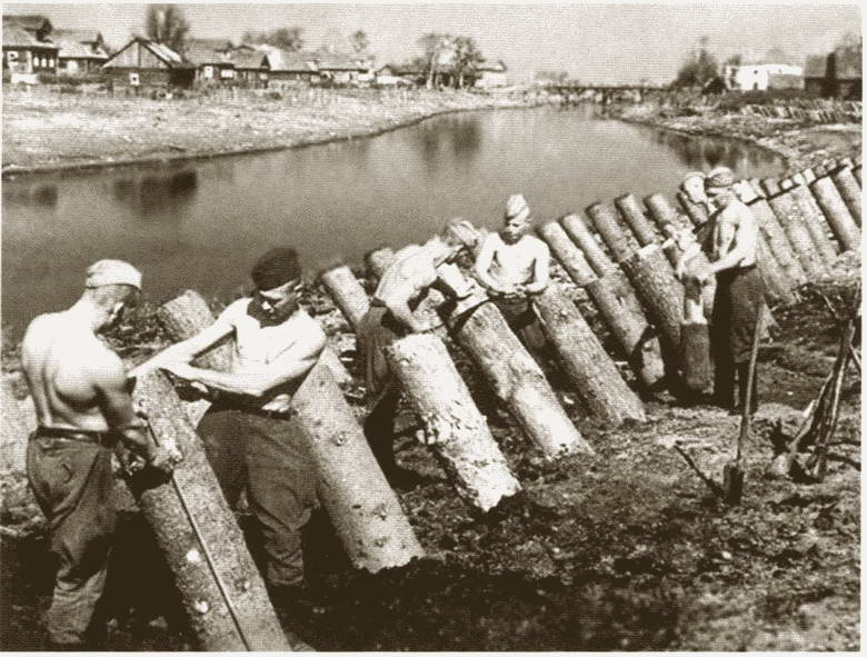 Бойцы Волховского фронта сооружают противотанковые препятствия. Август 1942 г.