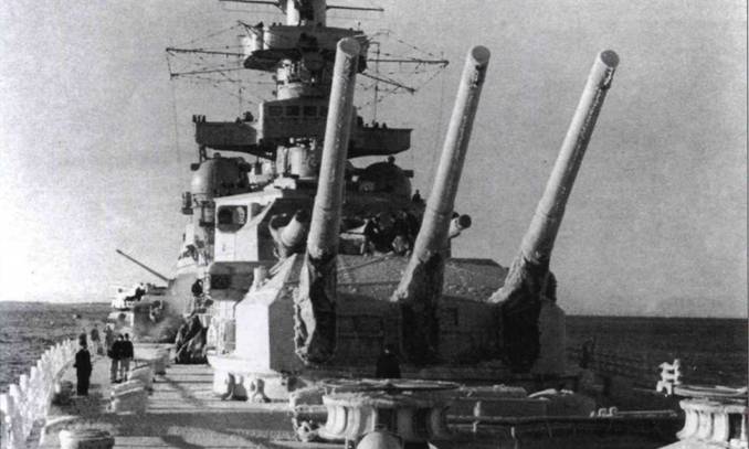 4 апреля 1942 г. отбуксирован в Готенхафен (Гдыня, Польша); здесь планировался ремонт и замена артиллерии главного калибра 380-мм орудиями